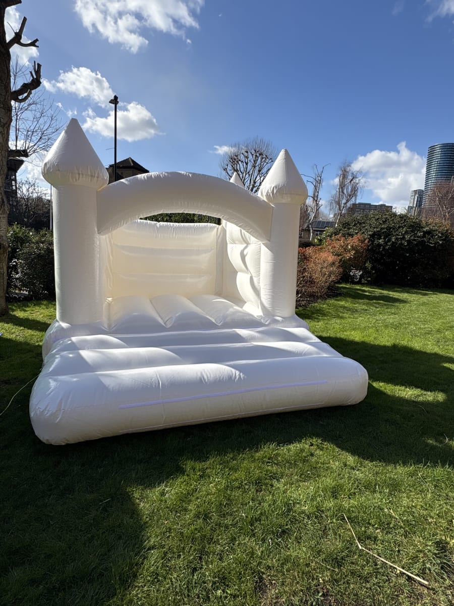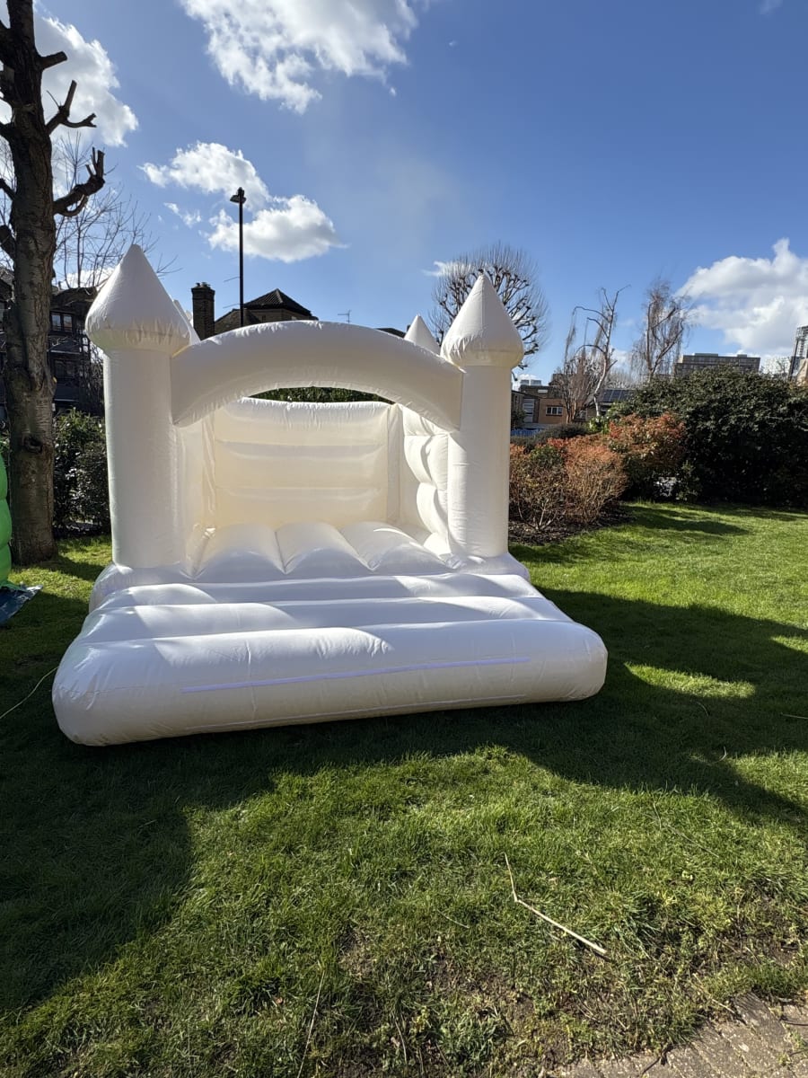 Perfect for princess parties and birthday fun. The White Castle bouncy castle measures 12ft x 10ft x 8ft. Soft, safe and stylish in cloud white. Ideal for toddlers and young children. Fast setup. Reliable blower included. Great for garden parties, school events and indoor hire. Book with confidence. 😊